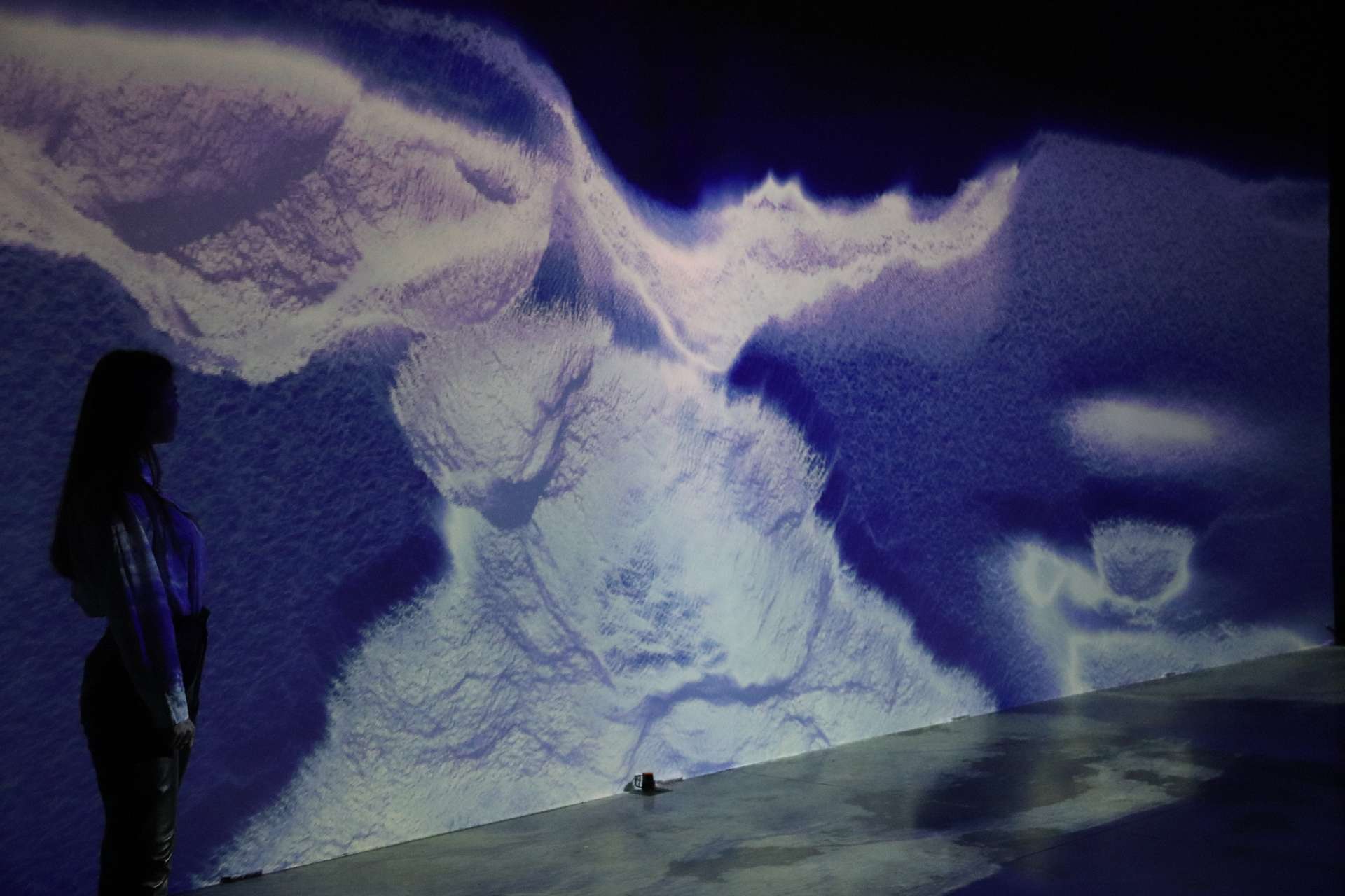 In einem abgedunkelten Raum schwimmen Quallen in leuchtend blauem Wasser. Besucherinnen und Besucher sitzen wie hypnotisiert von dem Guckloch. Sie tragen Kopfhörer: „Quallen sind die Letzten, die noch übrig sein werden, wenn alles andere zerfällt“, erfahren sie in russischer und englischer Sprache.