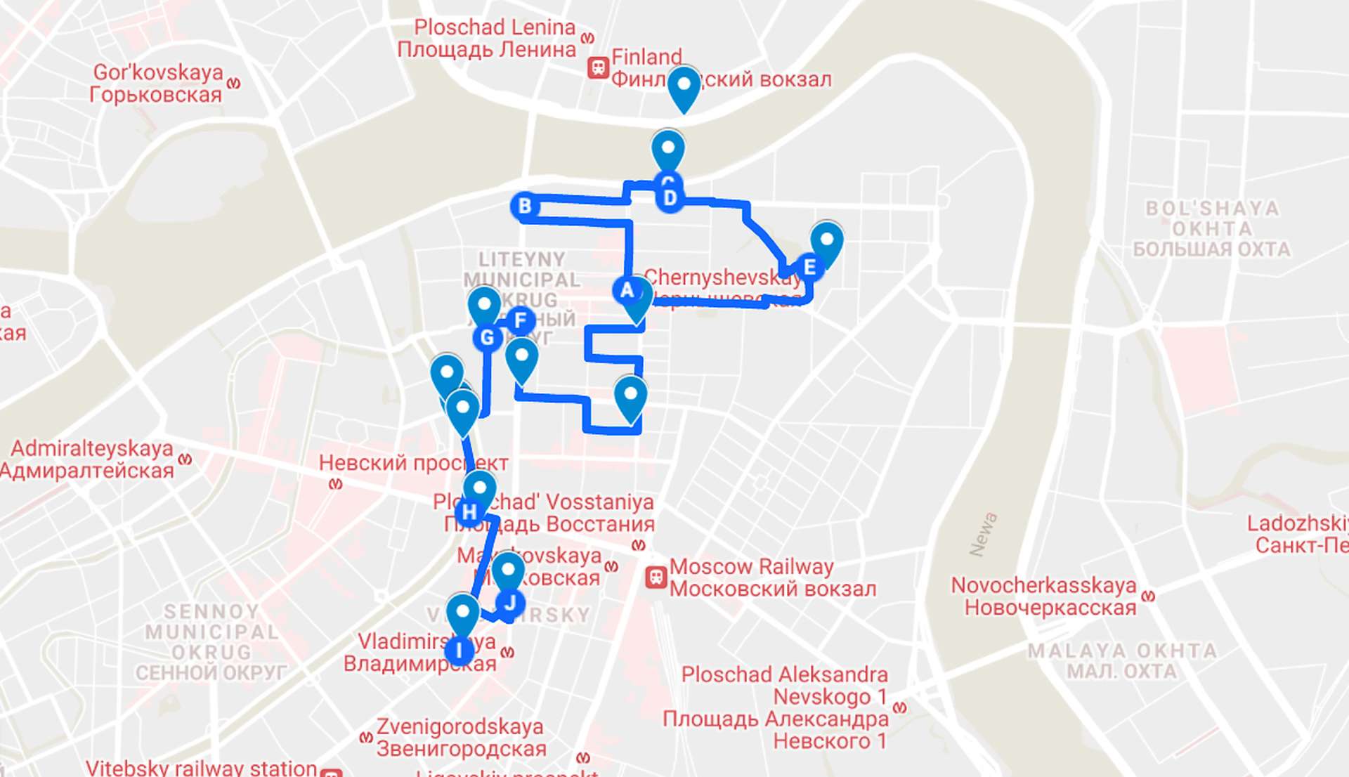 Wir gehen weiter, durch den Taurischen Garten, in dem sich vor der Februarrevolution 1917 Schwule und Lesben trafen. Vorbei am ersten medizinischen Ausbildungszentrum für Frauen. Wir besuchen die Häuser von feministischen Schriftsteller*innen und die Schauplätze großer Proteste. Man muss wissen, wo diese Orte sind, um sie zu finden. Denn die Stadt erinnert nicht an sie.