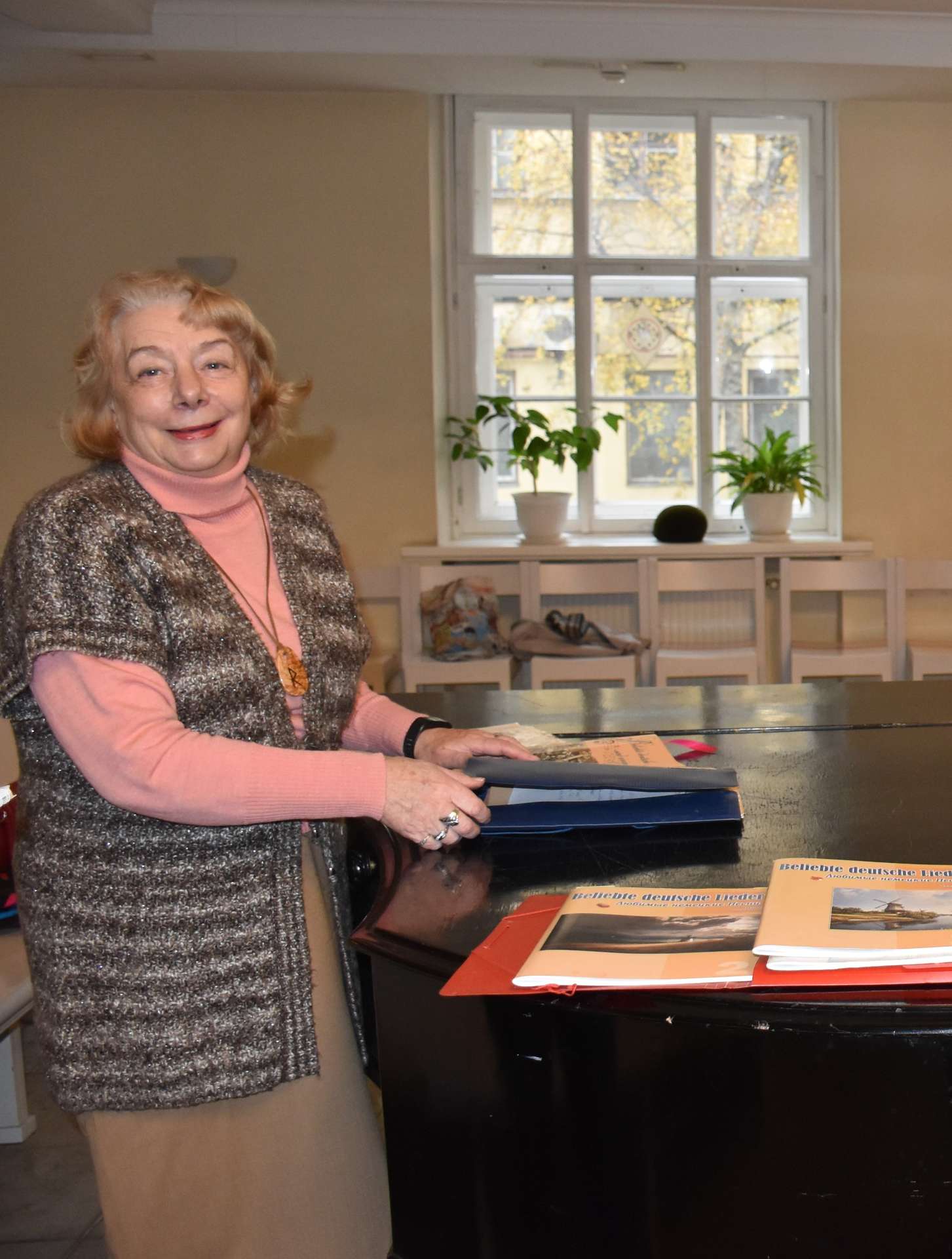 Dann werden Hefte quer auf dem Flügel verteilt „Beliebte deutsche Lieder und einige Gedichte“ steht darauf. Auf der ersten Seite der Name der Autorin: „N. P. Kraubner (Uralskaia)“. Seit mehr als zehn Jahren veröffentlicht Natalia deutsche Gesangsbücher unter dem Namen ihres Großvaters – eines deportierten Russlanddeutschen. In einer Mischung aus Russisch und Deutsch erzählt sie wie das begann.
